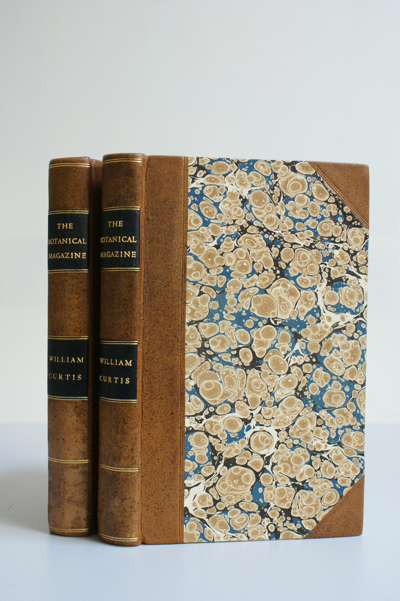 Vols rebound in half sprinkled calf and hand marbled paper.