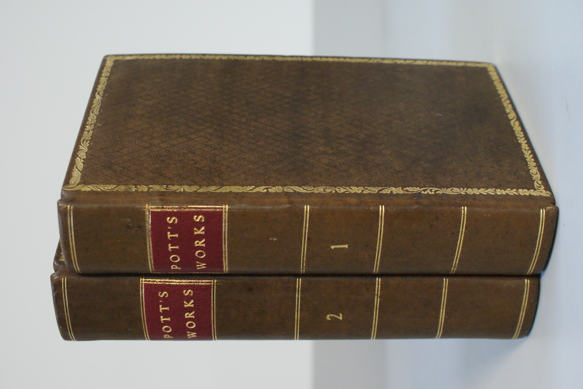 18th cent. medical texts rebound in sprinkled calf.