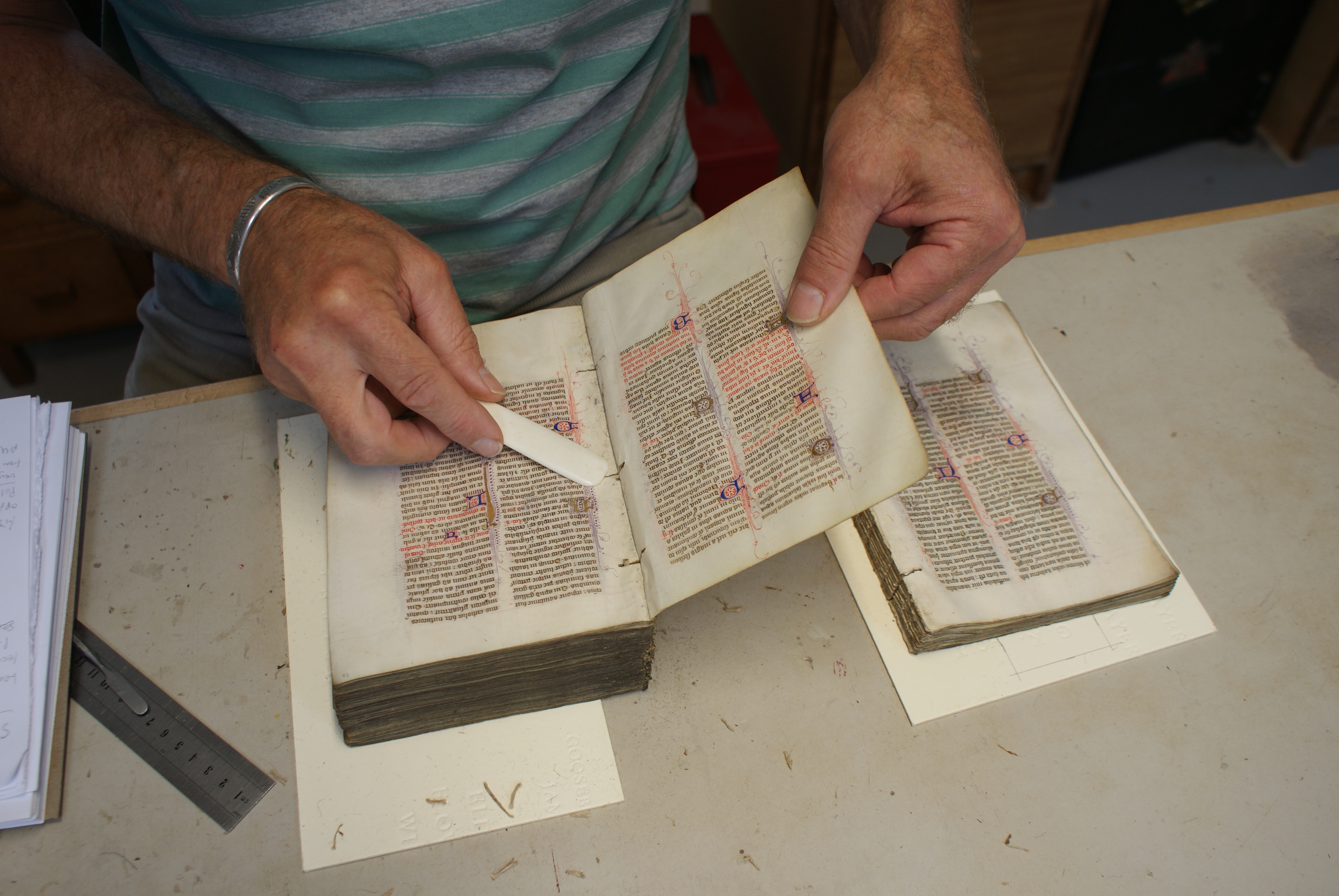 Separating the quires.